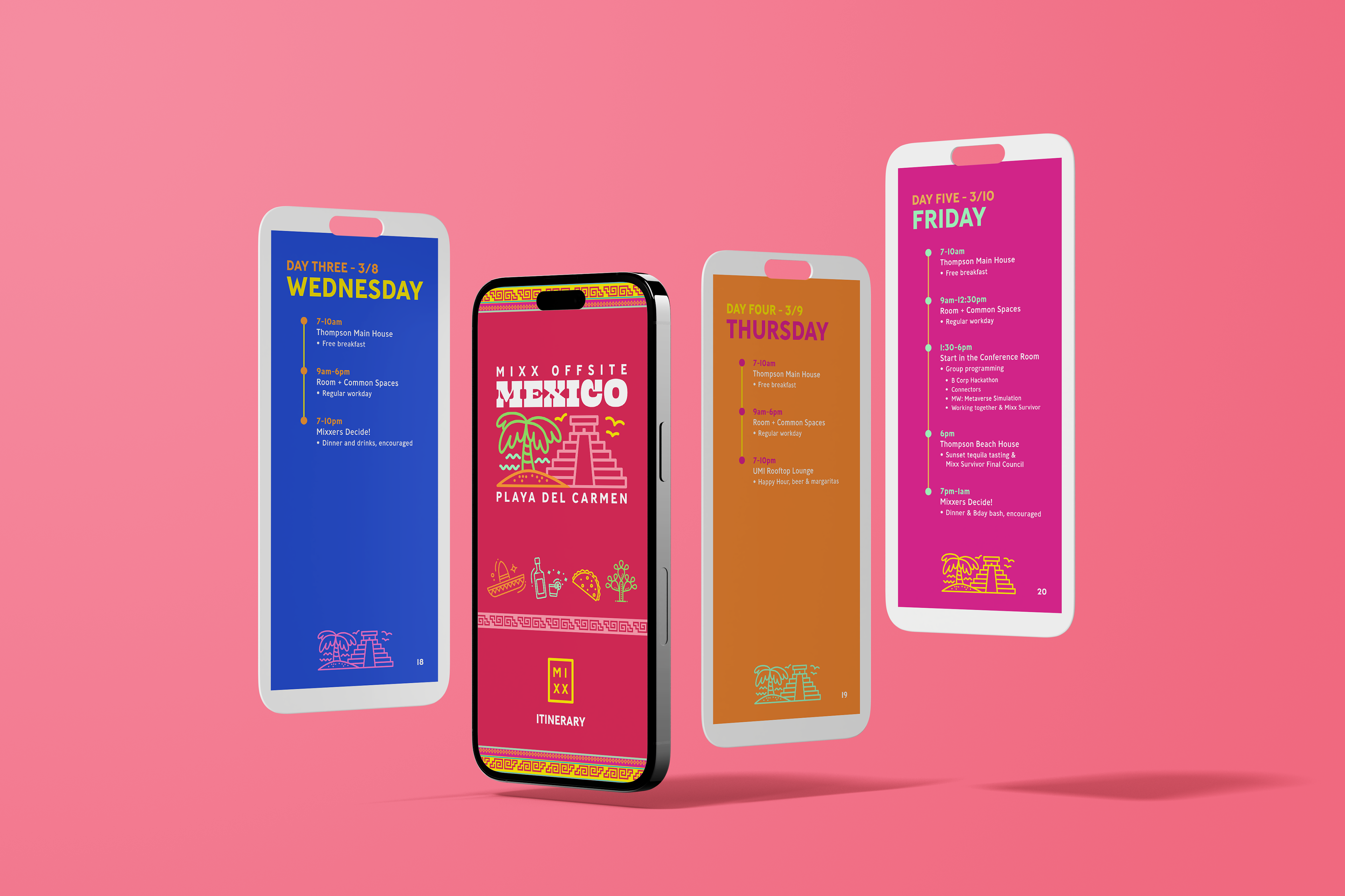 A guide and itinerary for the company offsite located in Mexico. Outlines all the travel details, important information, daily schedule and hottest local spots!